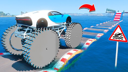 ПРОЕХАЛ ВОДНЫЕ КОЧКИ на ГИГАНТСКОЙ БУГАТТИ С ПИЛАМИ в ГТА 5 МОДЫ - ЭКСПЕРИМЕНТЫ в GTA 5 MODS