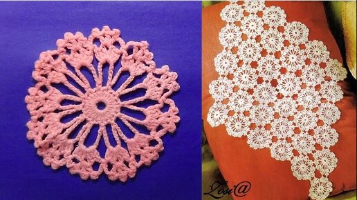 Салфетка крючком из круглых мотивов. МК.