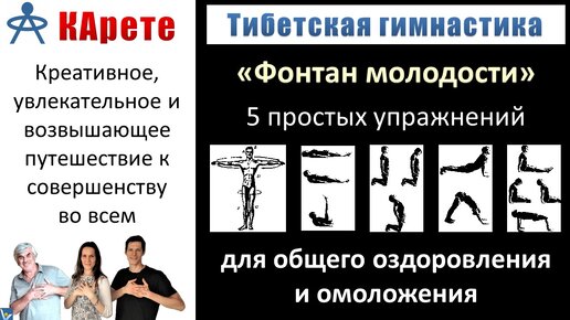 "ФОНТАН МОЛОДОСТИ" - тибетская гимнастика (тибетская йога, 5 тибетцев), 5 упражнений для общего оздоровления, омолаживание организма и духа