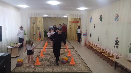 23 февраля в подготовительной группе, "Школа молодого бойца" с папами, дедушками, дядями.