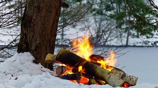 🔥 Музыка огня! Потрескивание костра в зимнем лесу ❄️