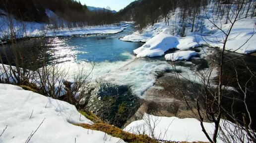 Музыка воды! Настоящий звук водопада в зимнем лесу!