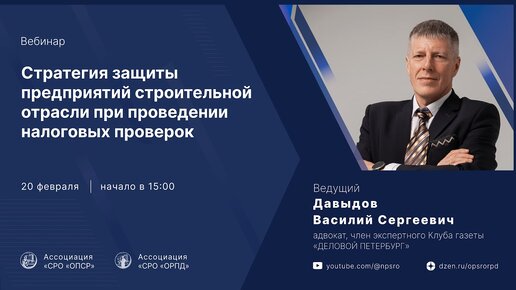 Вебинар: «СТРАТЕГИЯ ЗАЩИТЫ ПРЕДПРИЯТИЙ СТРОИТЕЛЬНОЙ ОТРАСЛИ ПРИ ПРОВЕДЕНИИ НАЛОГОВЫХ ПРОВЕРОК»