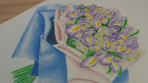 Букет ирисов акварельными карандашами.