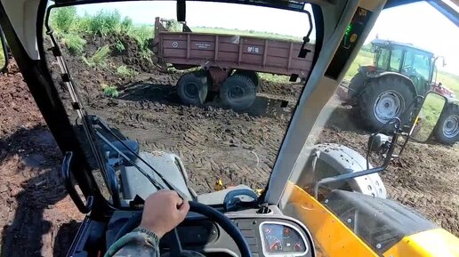 Внесение органически удобрений.Massey Ferguson 6713. Навозоразбрасыватель ПРТ-10. JCB 531-70.