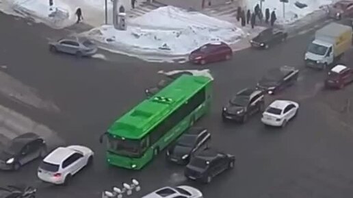 Они не думали, что помешают друг другу Появился момент ДТП автобуса и легковушки