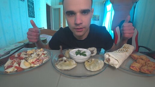 МУКБАНГ МАНТЫ С ГОВЯДИНОЙ / ШАУРМА - ЦЕЗАРЬ РОЛЛ / САЛАТ - КОСИЧКА / EATING / Mukbang ASMR АСМР