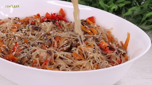 Как быстро приготовить вкусный гарнир к мясу или рыбе из фунчозы с овощами. Можно в Пост