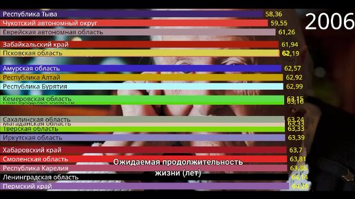 Регионы России с самой низкой продолжительностью жизни 1991-2022