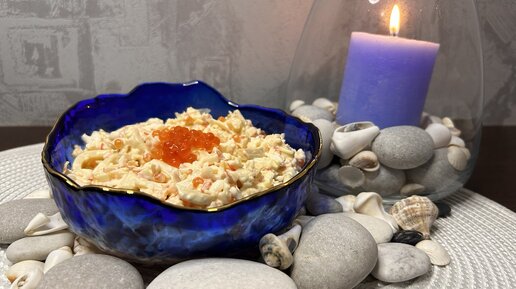 Нежный салат "Морской коктейль" с креветками, кальмарами и икрой
