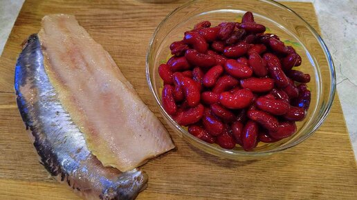 Беру СЕЛЁДКУ и 1 банку ФАСОЛИ. Готовлю потрясающий салат "Карабас" из самых простых продуктов (очень хорошее сочетание ингредиентов)