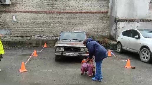 Английский кокер Хэсса на соревнованиях по ноузворку. Осмотр машины