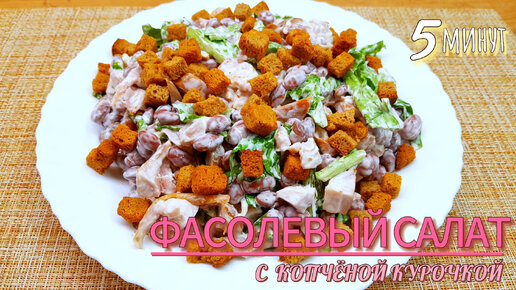 Фасолевый салат с копчёной курицей! 5 минут и готово!💖👍