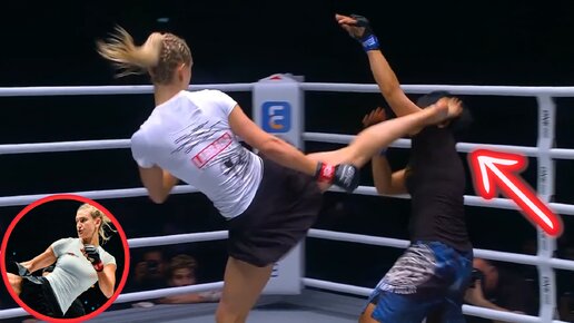 Длинноногая блондинка из Америки размотала “мальчика” в юбке. (Тайский бокс)