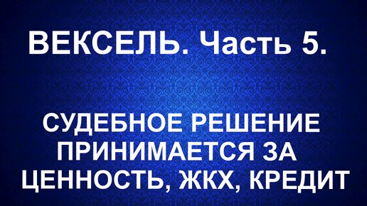 Вексель. СУДЕБНОЕ РЕШЕНИЕ. Принимается за ценность. Переводной вексель . ЖКХ. кредит. Часть 5.