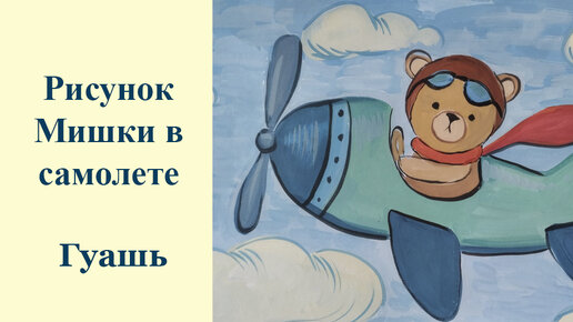 Рисунок гуашью папе в подарок Мишка в самолете / художник Симоненко Любовь