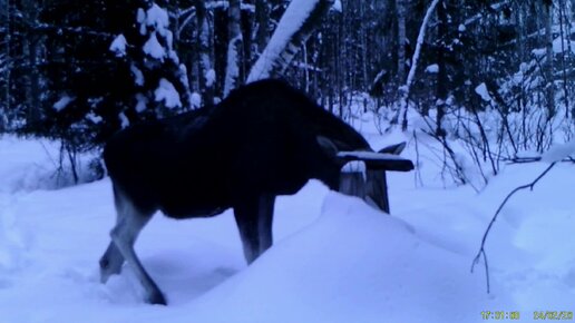 Лиса и лось на болоте, вероятно куница и лось на солонце