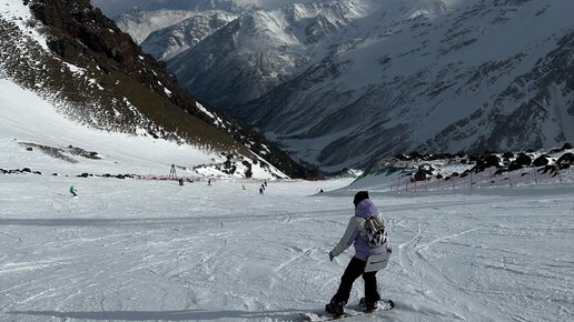 Эльбрус - 22 февраля 2024. Моменты спуска на сноуборде с самой высокой горы в России.