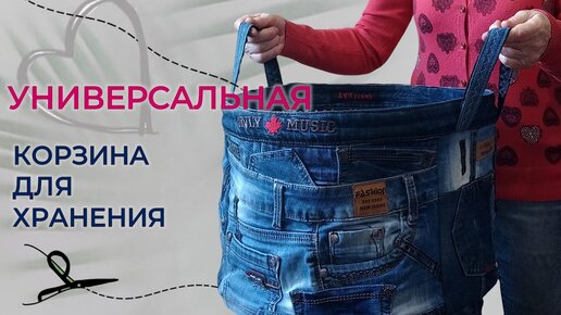 Универсальная корзина для хранения из остатков старых джинсов. Как выровнять пояс от джинс.Upcycling