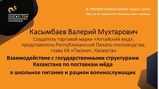 Выступление В.М. Кысымбаева (торговая марка "Алтайский мед") на сьезде Союза промышленных пчеловодов. Уфа, январь 2024