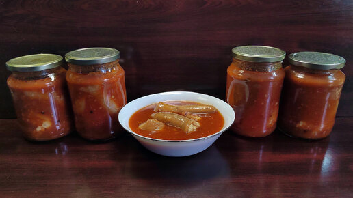 Консервация. Хвосты свиные в томатном соусе в автоклаве
