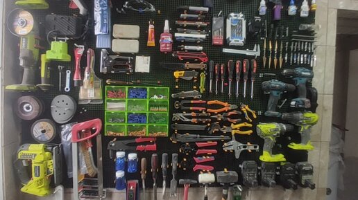 Система хранения инструмента в котельной строящегося дома.