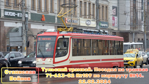 Тульский трамвай. Поездка на трамвае 71-623-02 №109 по маршруту №14. 22.02.2024