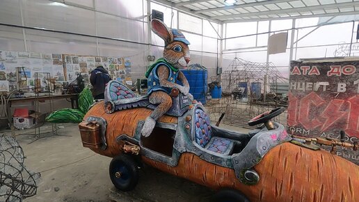 мастерская скульптур. скульптура морковки и зайца из цемента.