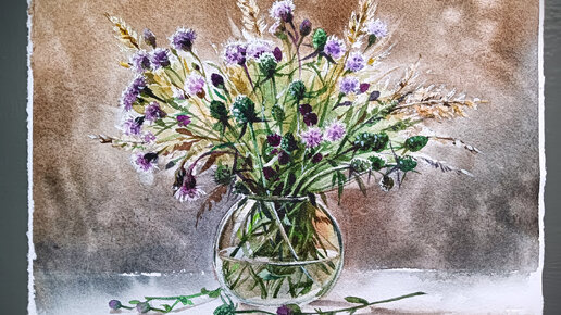 Далее: Рисуем незабудки в стеклянном кувшине акварелью.Ускоренное видео
