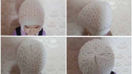 МК. Детская зимняя шапка с "ушками". Цельновязаная, без обрыва нити.