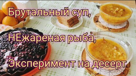 Меню на три дня: Гороховый суп, Тушёная рыба, Черничный пирог.