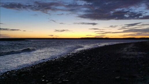 Красивый вечерний закат солнца на море, дует сильный ветер
