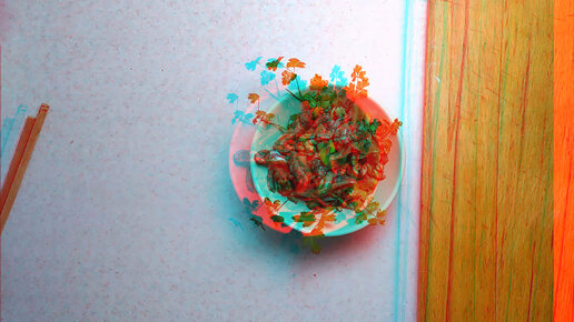 3D stereo red-cyan Вешенки с орехами в кисло-сладком соусе или закуска из вешенки