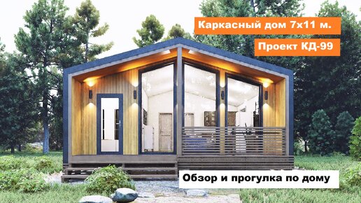 Обзор дома с панорамными окнами | Барнхаус | Проект каркасного дома 7 на 11 м.