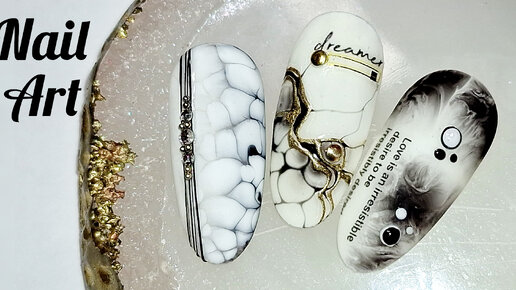 Просто и эффектно. Черно-белый маникюр. Растекашки.