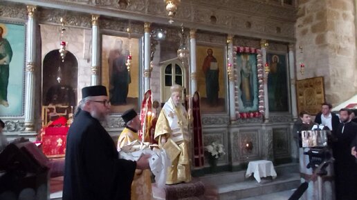 Подходим за святым хлебушком к Епископу - храмовый праздник в монастыре святого Харалампия