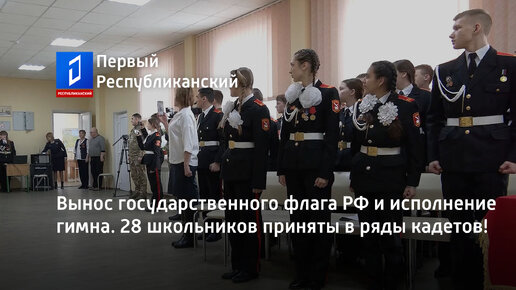 Вынос государственного флага РФ и исполнение гимна. 28 школьников приняты в ряды кадетов!