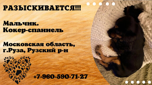 Пропала собака! Мальчик. Кокер-спаниель. Московская область, г.Руза, Рузский район.