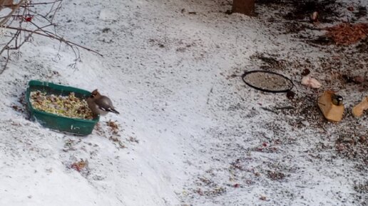 Свиристель охраняет свои яблоки.