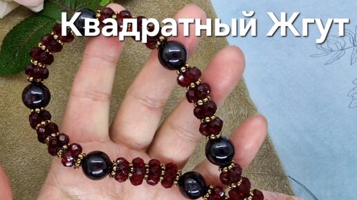 Квадратный Жгут, Колье. Гранат в украшении.