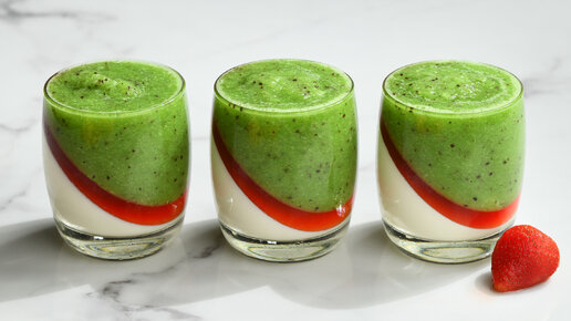 Десерт из киви и клубники. Панна-котта в стаканчиках.