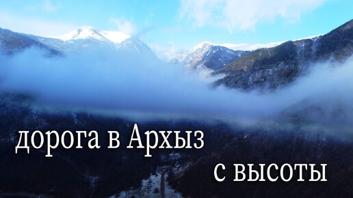 Утренний полет в горах зимой. Дорога в Архыз с высоты