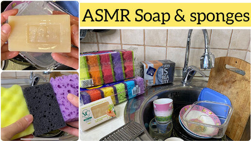 АСМР Мытье посуды хозяйственным мылом и кухонными губками.