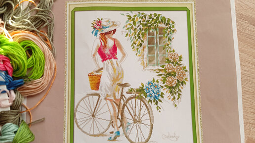 Обзор набора для вышивки, сюжет "Девушка с велосипедом" с нанесенным рисунком с Aliexpress