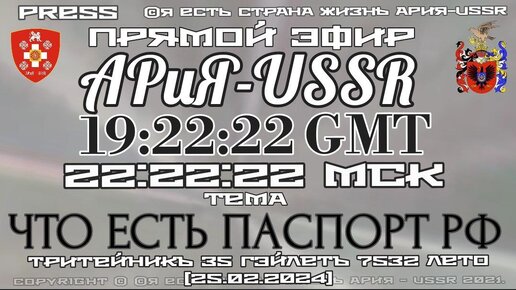 Прямой ЭФИР АРиЯ-USSR 📺 Тритейник 35 Гэйлет 7532 лето от С.М.З.Х. [25.02.2024] 🛂ЧТО ЕСТЬ ПАСПОРТ РФ
