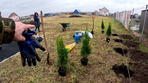 Посадили тюльпаны и туи. Компостная яма на даче.