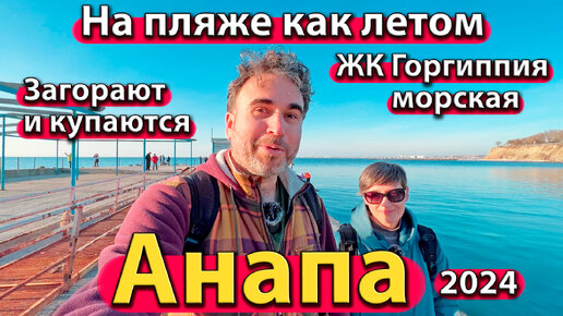 Анапа - на пляже как летом! Люди загорают и купаются. ЖК Горгиппия морская. Квартира куда переехали. Сезон 2024- - зима.