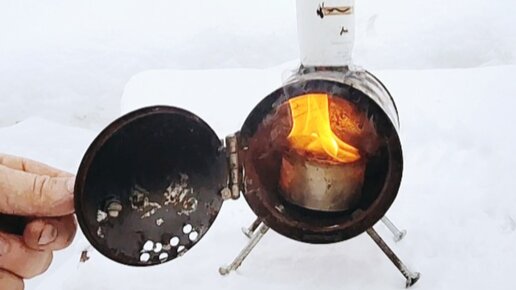 Аварийная универсальная печь на отработке для палатки, за 6 минут своими руками