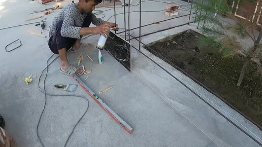 Необычный колонны из керамогранита и мрамора, подходит на даче как раз, быстро легко и качественно
