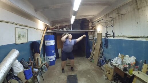 Рустам Исламов выполняет швунг гири 74 кг., с плеча на 15 раз